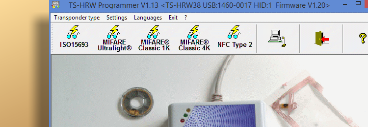 To use the "GiS TS-HRW MIFARE AutoWriter" software a TS-HRW38 device is needed.