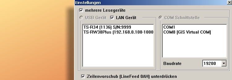 Der Transponder-Leser muss so konfiguriert sein, dass er die gewünschten Daten automatisch liefert.